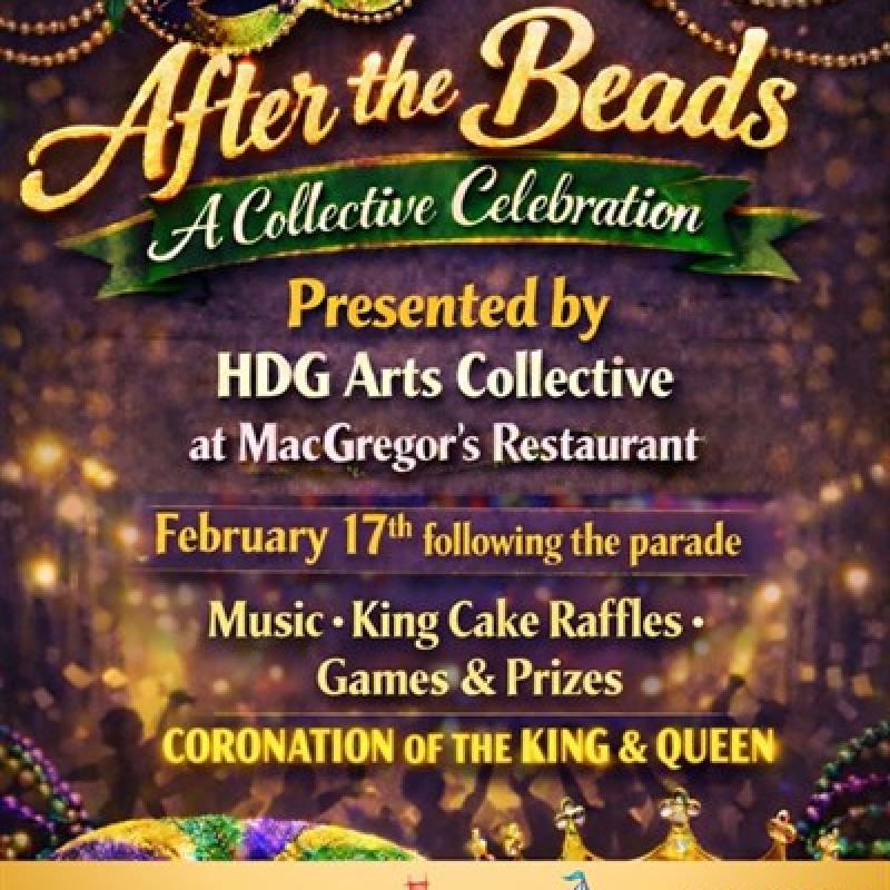 Keep the Mardi Gras energy going! The HDG Arts Collective invites you to a festive post-parade gathering at MacGregor’s Restaurant. This event serves as the grand finale to the day’s festivities!