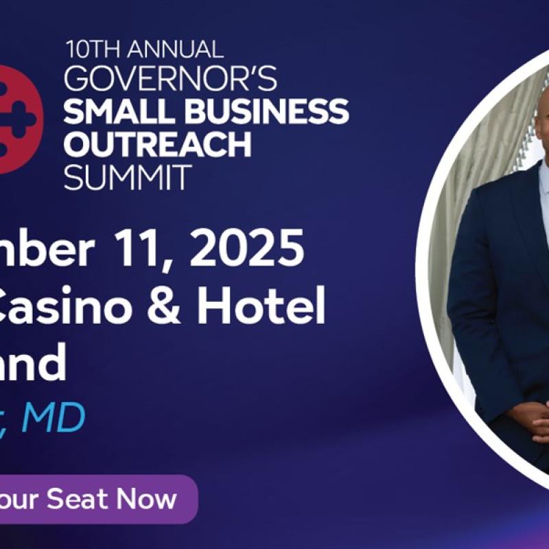 Save the Date! The 10th Annual Governor’s Small Business Outreach Summit is back — bigger and better than ever. Join us Nov. 11 at Maryland Live! Hotel + Casino for a day of connection, innovation, and opportunity!
