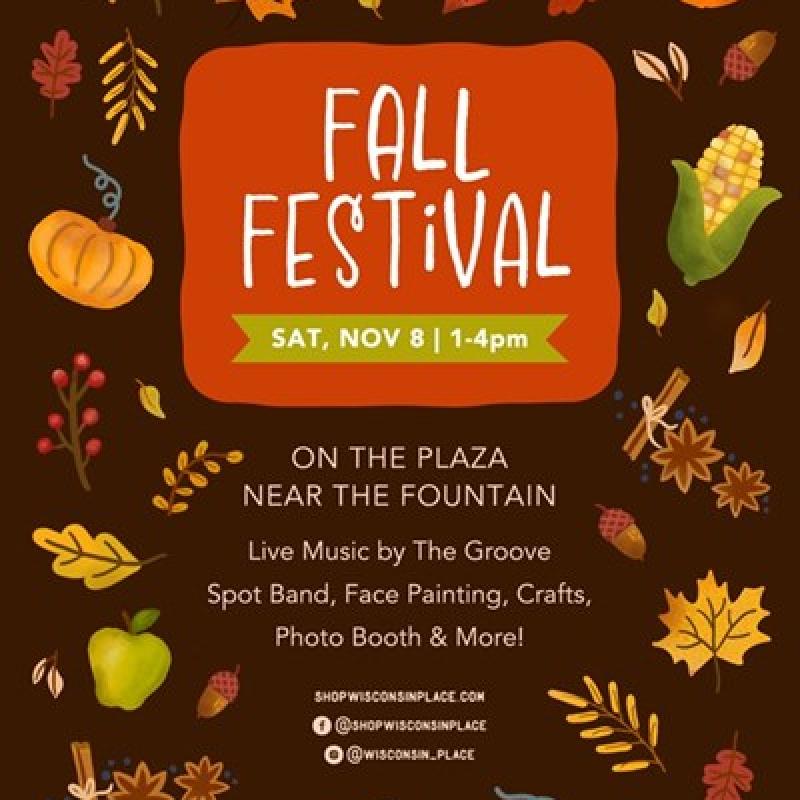 Join us at The Shops at Wisconsin Place for our annual Fall Festival on Saturday, Nov. 8th! Enjoy live music, face painting, caricatures, train rides, vintage photo booth, air brush tattoos, crafts, & more!