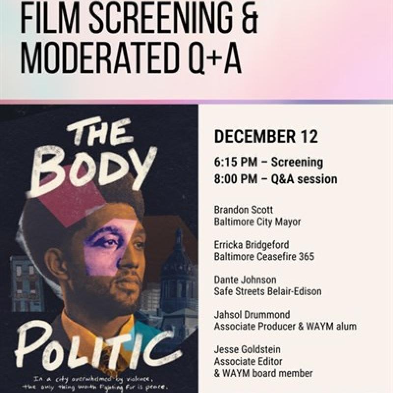 The Body Politic is a celebrated documentary film that chronicles the first year of Brandon Scott's term as Baltimore's youngest-ever mayor. The film provides an intimate look at his holistic approach, as well as the opposition and scrutiny he faces.