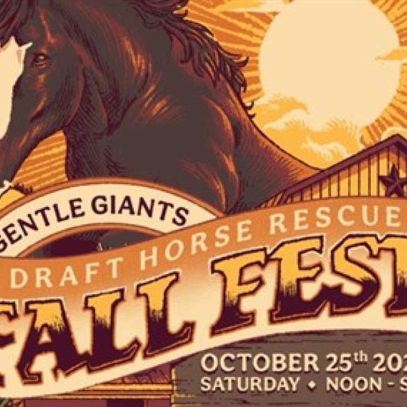 Enjoy a Fall Festival and benefit for Gentle Giants Draft Horse Rescue with live music, archery, food trucks, games, and hay rides on a working farm.