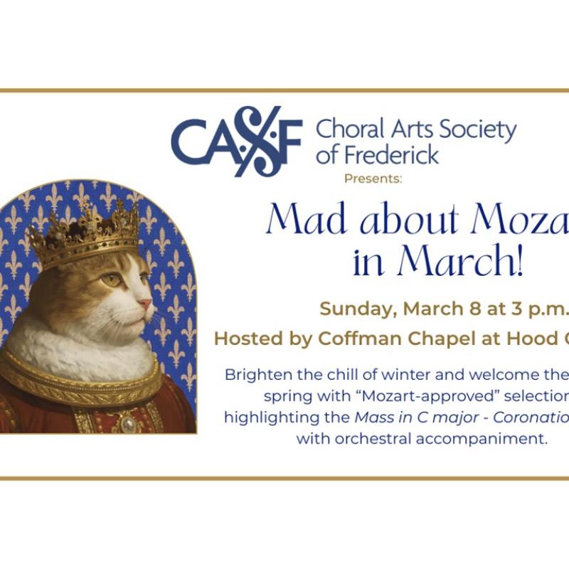 The CASF presents Mozart’s Mass in C Major, the Coronation Mass. Accompanied by orchestra and soloists, the choir will present an afternoon of musical delights, written by or about Wolfgang Amadeus Mozart.