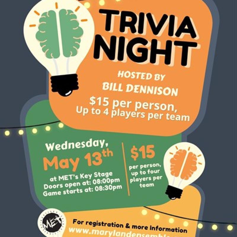 Grab your friends and gear up for MET's first Trivia Night, hosted by MET fan-favorite and trivia extraordinaire Bill Dennison! Doors open at 8pm with the game to start promptly at 8:30pm.