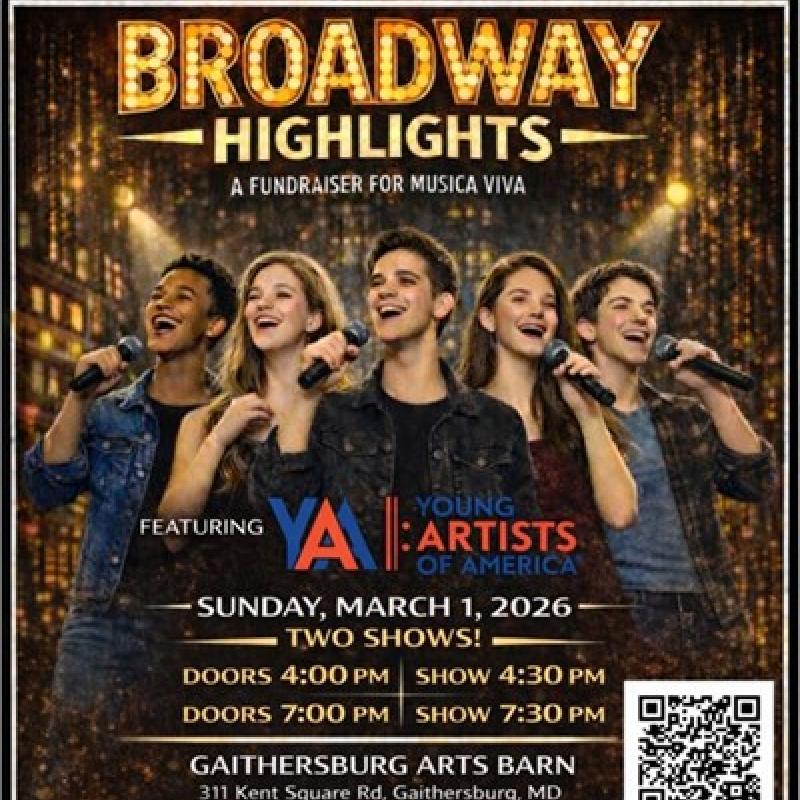 Musica Viva Kentlands presents Broadway Highlights, an exciting evening of beloved show tunes performed by members of the acclaimed Young Artists of America musical theatre company.