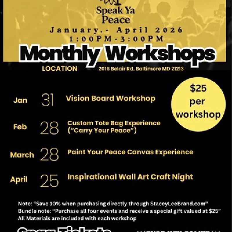 From vision boards to painting and creative expression each Speak Ya Peace workshop is a step toward healing, confidence and showing up for yourself.