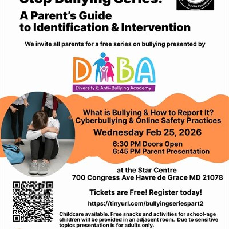 The Havre de Grace Youth Commission invites parents to attend a free workshop on Bullying Identification and Intervention.