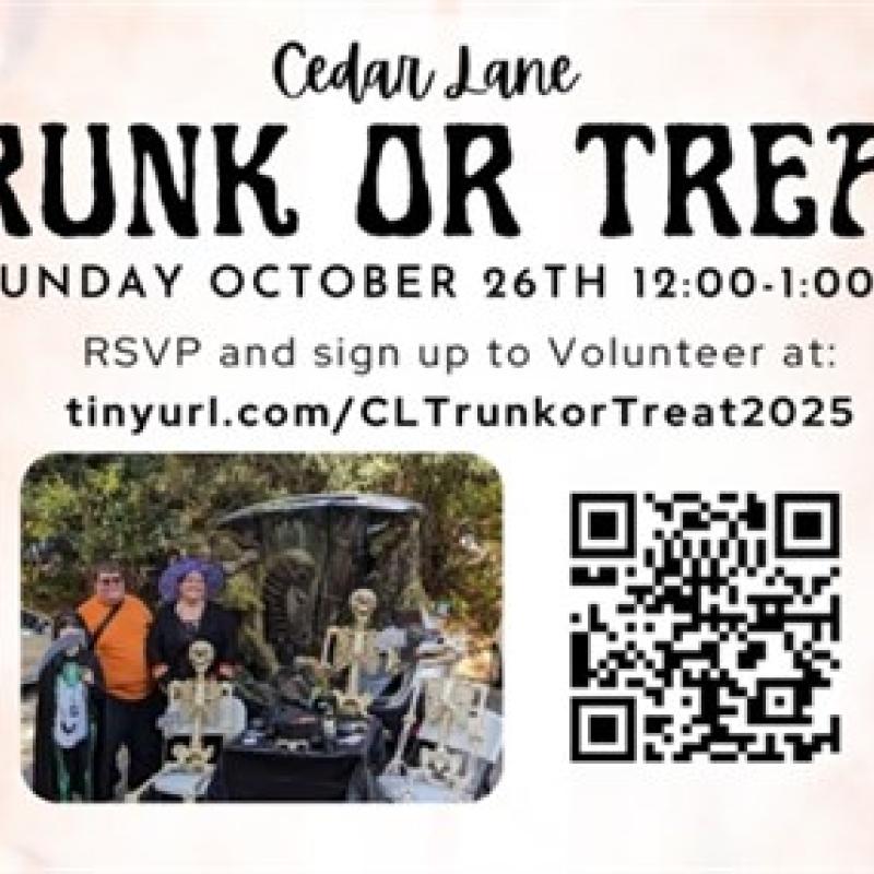 You're invited to our Trunk or Treat! Gather at at 12:00 PM in the Cedar Lane UU Culver Street parking lot for an afternoon of festive fun. Come dressed in your costume, bring a blanket or chair, and your best trunk decorations. Kids get to show off