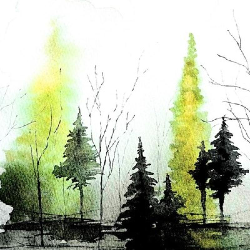 Utilizing classic techniques, students will create a forest scene with a gradient wash of muted greens and browns. A pine forest shrouded in fog will be the background, while the foreground becomes more distinct, lending depth to the landscape.